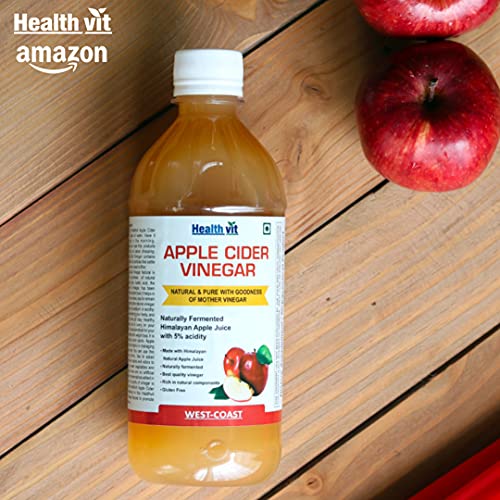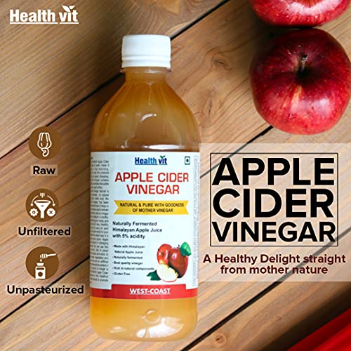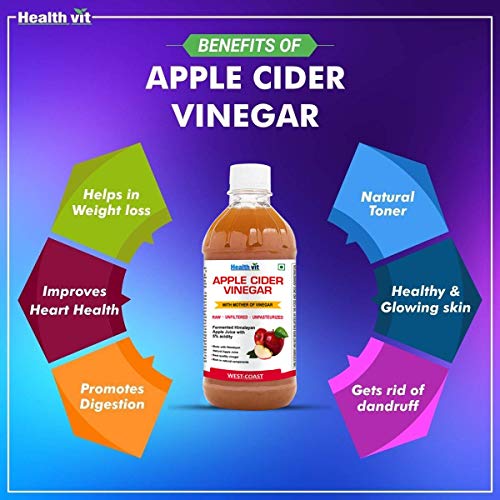 Benefits Of Healthvit Apple Cider Vinegar 500ml Natural & Pure With Goodness Of Mother Vinegar Naturally Fermented Himalayan Apple Juice with 5% Acidity Made with Himalayan Natural Apple Juice Naturally Fermented Best Quality Vinegar Rich in Natural Components. Benefits: Weight Management. Improves Digestion: Dilute apple cider vinegar in water, add honey and have it at least thirty minutes prior to a heavy meal to stimulate digestive juices for better breakdown of food. Boosts Energy and Improves Immunity, A swig of Apple Cider Vinegar diluted in water is just the right potion to flush the toxins out of your system.