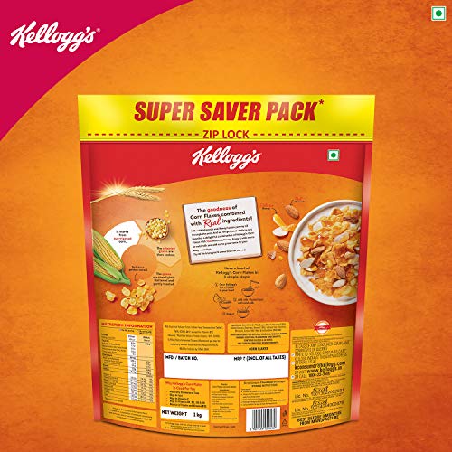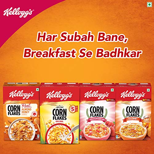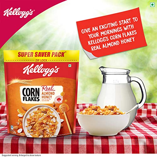 Kellogg’s Corn Flakes Real Almond Honey | Breakfast Cereals | High in Vitamin B1, B2, B3, B6 & C| High in Iron | Naturally Cholesterol Free | 1 kg Pack