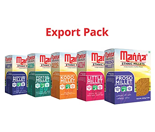 Manna Millets – Natural Grains Combo Pack Of 5 | Foxtail 500g, Kodo 500g, Proso 500g, Little 500g, Barnyard 500g, Nutrient Powerhouse, High Protein & 100% More Fibre Than Rice
