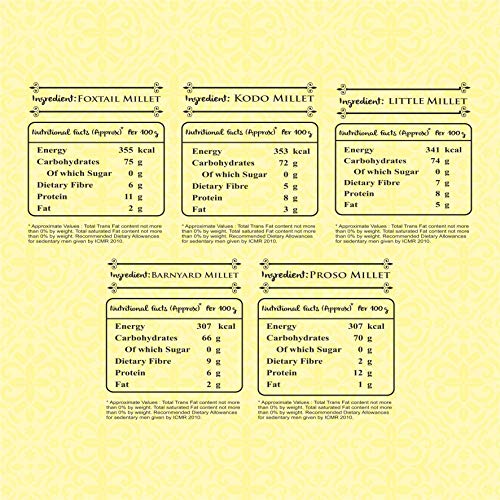 Combo Of : Kodo Millet, Proso Millet, Little Millet, Foxtail Millet & Barnyand Millet