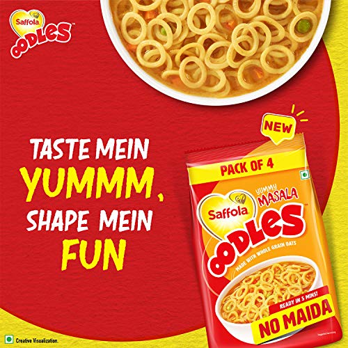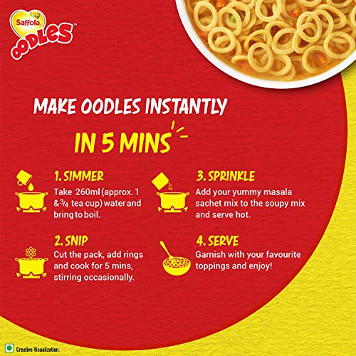 It comes with a Yummy Masala mix sachet inside which you can add as per your taste. Saffola Oodles is super easy to prepare- get your hot bowl instantly in 5 minutes in just 1,2,3,4-