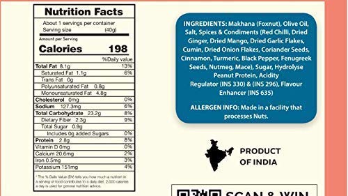 PROCESS : Slow Roasted to maintain nutritional value. Made with Perfection with researched recipes and understanding of customer taste choices, we work hard to create makhana that you will fall in love in first bite Product Attributes Bullet Points