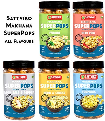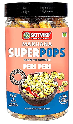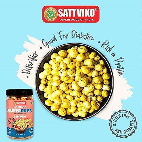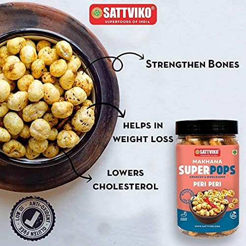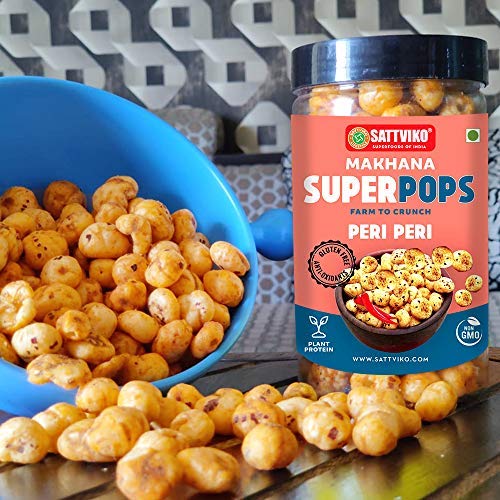 Sattviko Roasted Makhana Superpops Food Items Snacks Peri Peri (67 gm) | Healthy Snacks in Fresh | Food Items | Gluten Free | Dry Food | Organic Food | Foodyoga