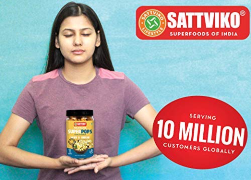 HEALTHY SNACKS :Makhana is Antioxidant and is a good source of protein, high minerals, carbohydrates, potassium, iron and lot of fibers. Low calories help in weight loss and good for skin with anti aging properties. It is a popular fasting dish (Vrat) and its health benefits are equivalent to walnuts and almonds (dry fruits). With 20% less calories and 67% less fat than popcorn, Each Sattviko Makhana Jar of 70 g packs 9 g of Protein.