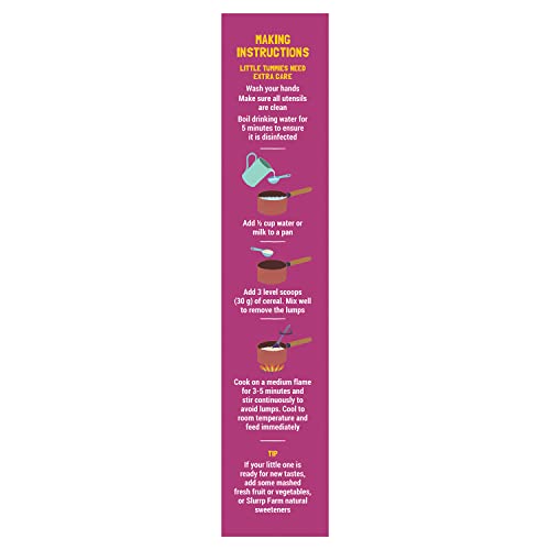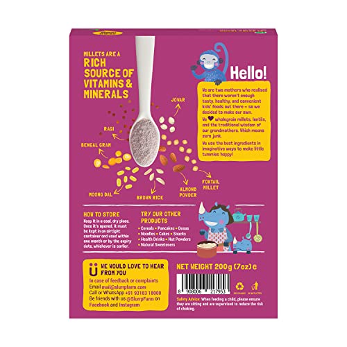 Ingredients: Ragi, Jowar(Sorghum), Foxtail Millet, Moong Dal, Bengal Gram, Brown Rice, Almond Flour, Cardamom powder, Vitamins and Minerals How to Use: 1. Add 1/2 cup of water or milk into a pan 2. Add 3 level table spoons (30 gms) of Sathu Maavu mix 3. Mix well to remove the lumps 4. Cook on a medium flame for 3-5 mins and stir continuously to avoid lumps 5. Cool to room temperature and feed immediately | Once the pack is opened, transfer the contents to an airtight container, store in cool dry place or in a refrigerator | At Slurrp Farm, brand made by 2 Mothers, we are passionate about raising awareness of healthy eating for children and giving busy parents like us, the convenience needed in terms of being able to find food options which are as good as what we would make at home.