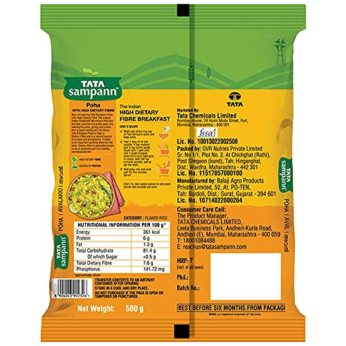 Poha, also called flattened/ beaten rice, is a much loved and eaten snack in India. With a dash of peanuts and curry leaves, it makes for a breakfast enjoyed by everyone. Tata Sampann thick poha can be used to make a healthy snack as it uses minimal oil while roasting and is high in fibre which is an essential part of a healthy and balanced diet. The thick poha packed with its wholesome goodness intact is also a natural source of protein which is an important building block for the body. Tata Sampann thick poha can be used to prepare great-tasting and nutritious breakfast for a delightful day. Poha can be enjoyed in breakfast, with evening tea, for a light dinner or to satisfy midnight cravings. Just open a pack and make your favourite recipe. Storage: transfer content to an airtight container after opening. Store in a cool and dry place. Do not purchase if the pack is open or tampered or punctured.