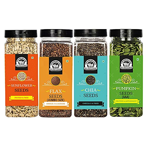 WONDERLAND FOODS (DEVICE) Healthy Roasted Seeds Combo Pack of 4 – Chia 200g, Pumpkin 200g, Sunflower 200g and Flax 200g